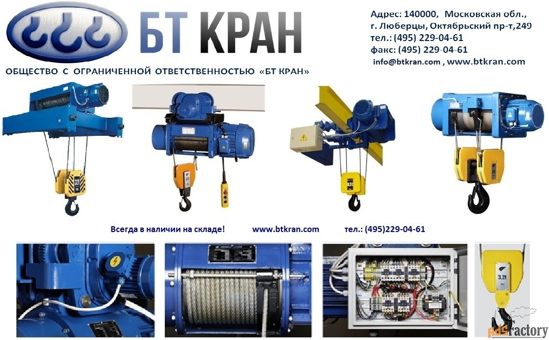 На рынке представлен широкий ассортимент электроталей, с различными характеристиками и грузоподъемностью. Выбор электротали под конкретные задачи не составит особого труда.