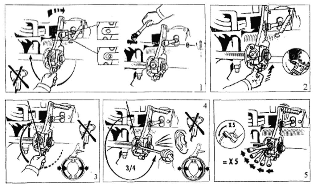 После завершения вышеописанного регулирования возможно наличие зазоров в пространстве от барабана до колодок.