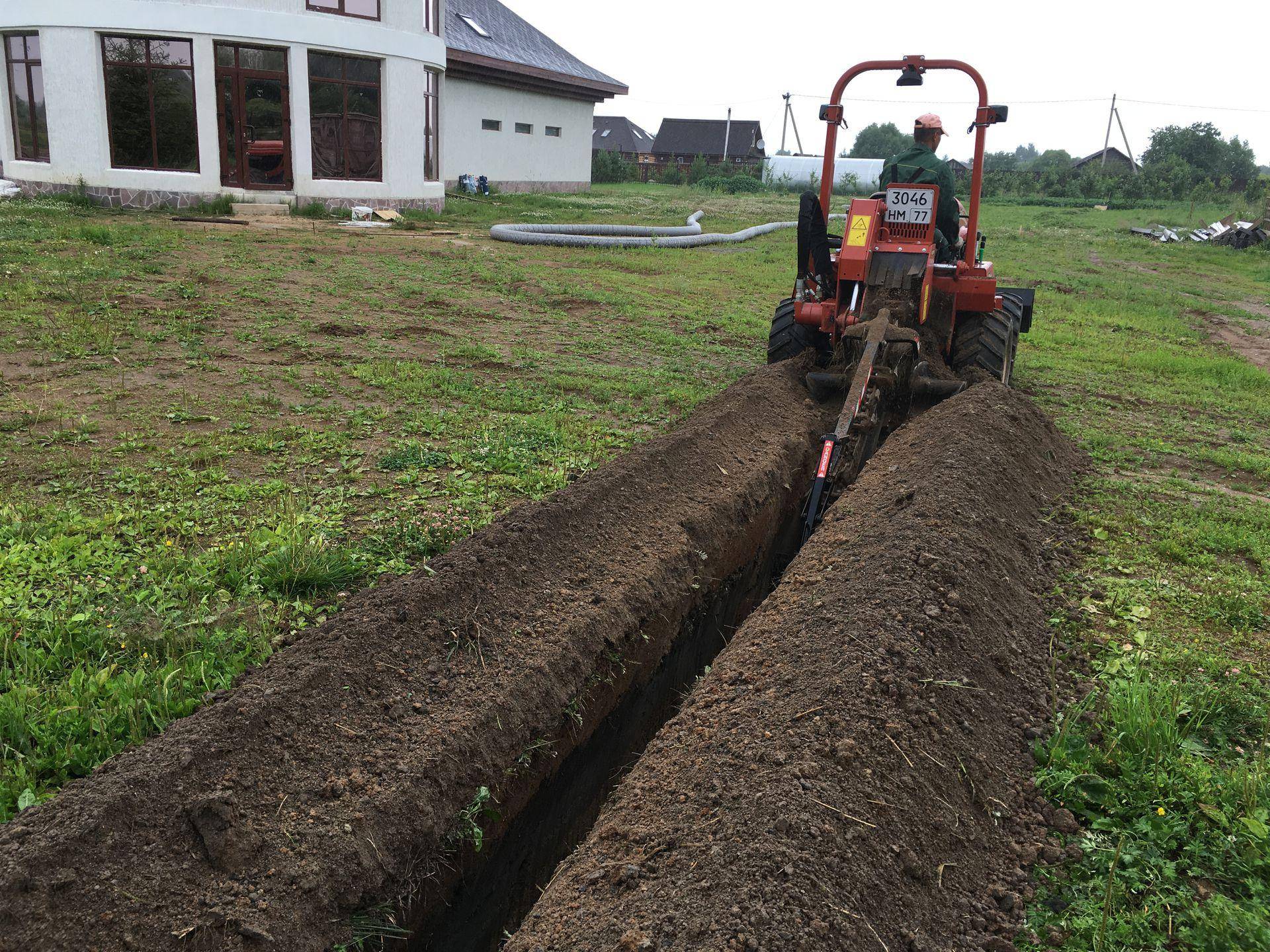 Если для работ в глубоких слоях почвы применяется экскаватор, то для поверхностной обработки достаточно использовать траншеекопатель.