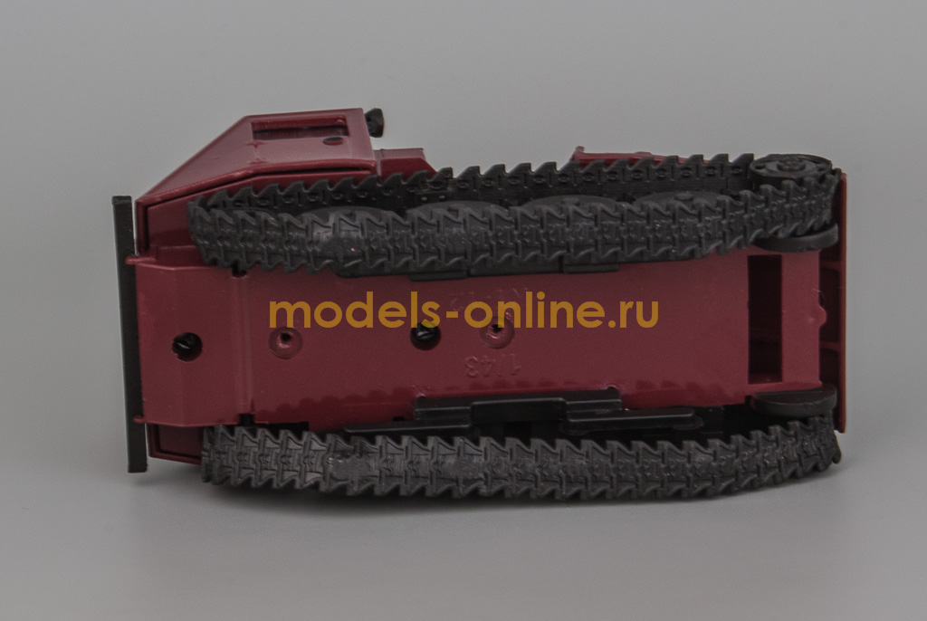 Каждая из гусеничных цепей состояла из 71 трака 34-сантиметровой ширины с направляющими гребнями и развитыми грунтозацепами. Соединительные пальцы траков гусениц были вставлены в проушины траков со стороны корпуса трактора и держались на месте без шплинтовки при помощи отбойного бруса, который был закреплён на корпусе в его кормовой части. Поскольку применялись съёмные зубчатые венцы как на направляющем, так и на ведущем колёсах, гусеница надёжно удерживалась на своём штатном месте при выполнении поворотов трактором.