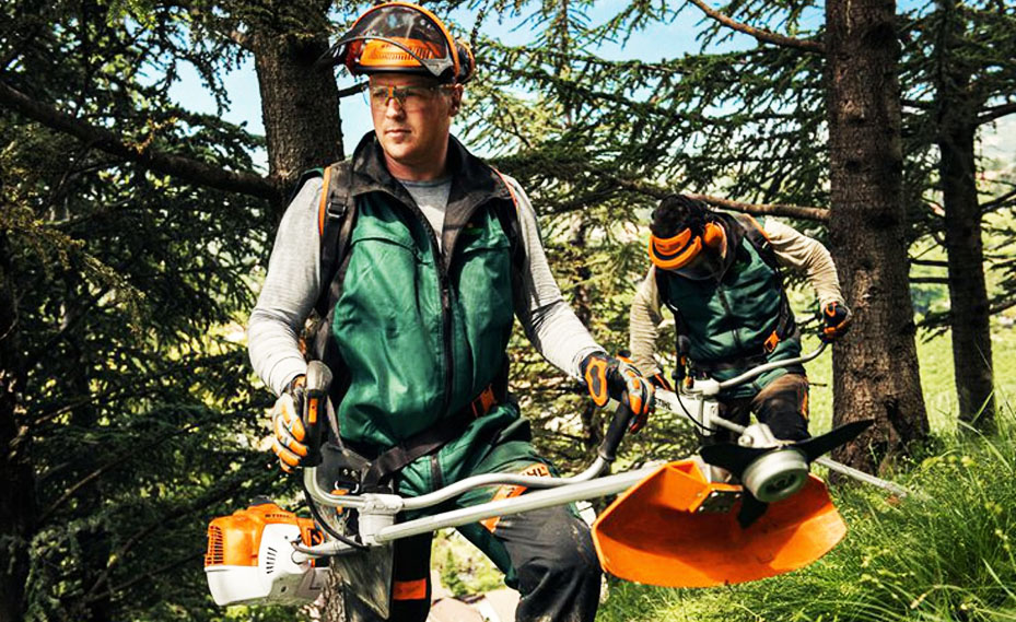 Работа с кусторезом означает необходимость соблюдения техники безопасности. Она предусматривает использование в работе каски с защитным экраном и перчаток. Следует также использовать наушники.
