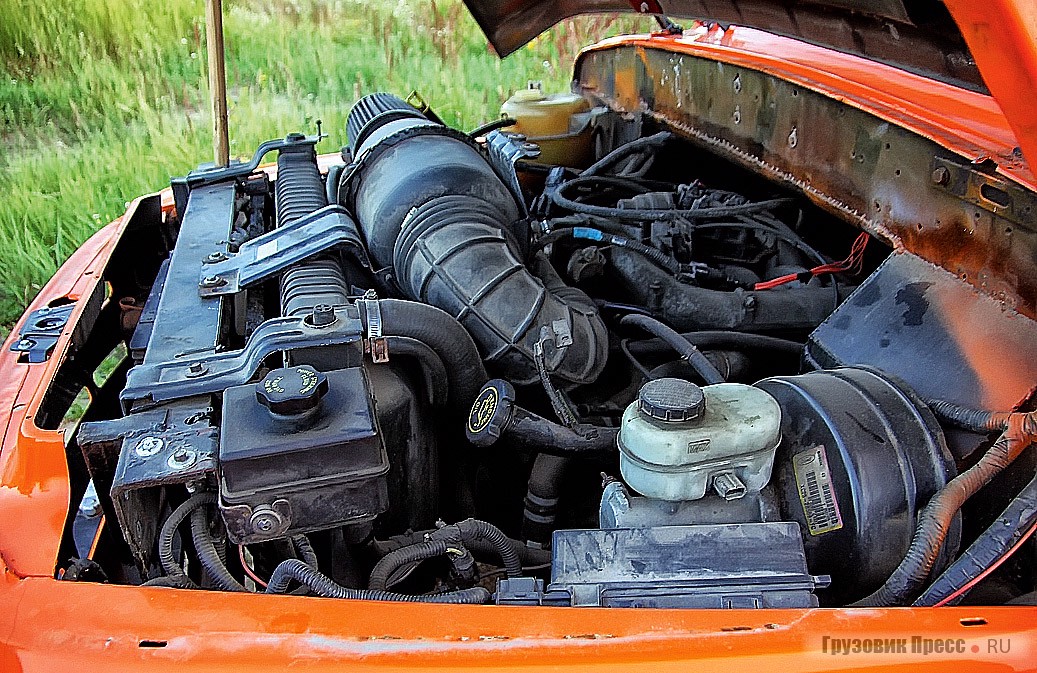 Коробка передач — четырехступенчатая от ГАЗ-24. Интересен и необычен здесь топливный бак под кабиной с выполненным тоннелем под карданный вал.