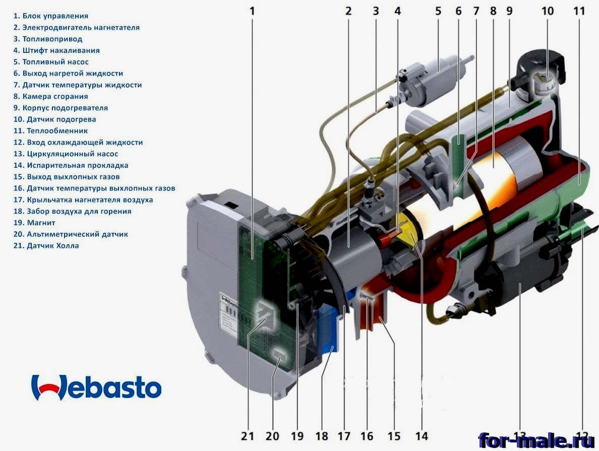 Вебасто имеет достаточно простую конструкцию, что делает его надежным и заслуживающим доверия. При этом подготовить машину к штатному запуску можно даже в 30-градусный мороз.