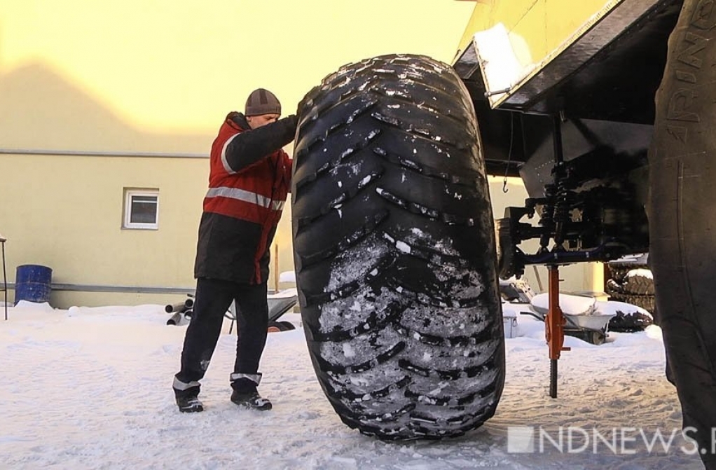 Вездеход «Бурлак» готовят к экспедиции на Чукотку. Демонтаж колеса размером с человека