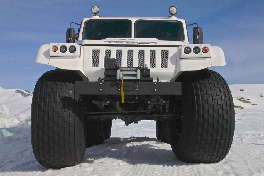 Вездеход России отключает привод передний и развивать наибольшую скорость 120 километров в час, а запас хода достигает тысячи километров.